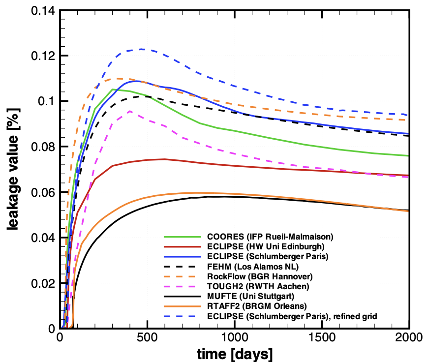 Fig. 12 Leakage rates [%] obtained with the simulators considered in (Class et al., 2009).
