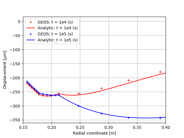 Solution to this axisymmetric problem can be obtained in the cylindrical coordinate system by using an implicit 1D finite difference method (Jane and Lee 1999). Results of such analysis will be considered as reference solutions to validate GEOS results.