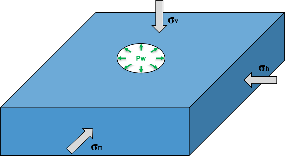We simulate a drained wellbore problem subjected to isotropic horizontal stress () and vertical stress (